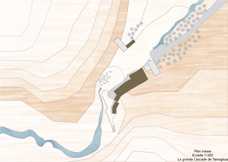 plan masse de l'existant : La grande Cascade de Tamaghza